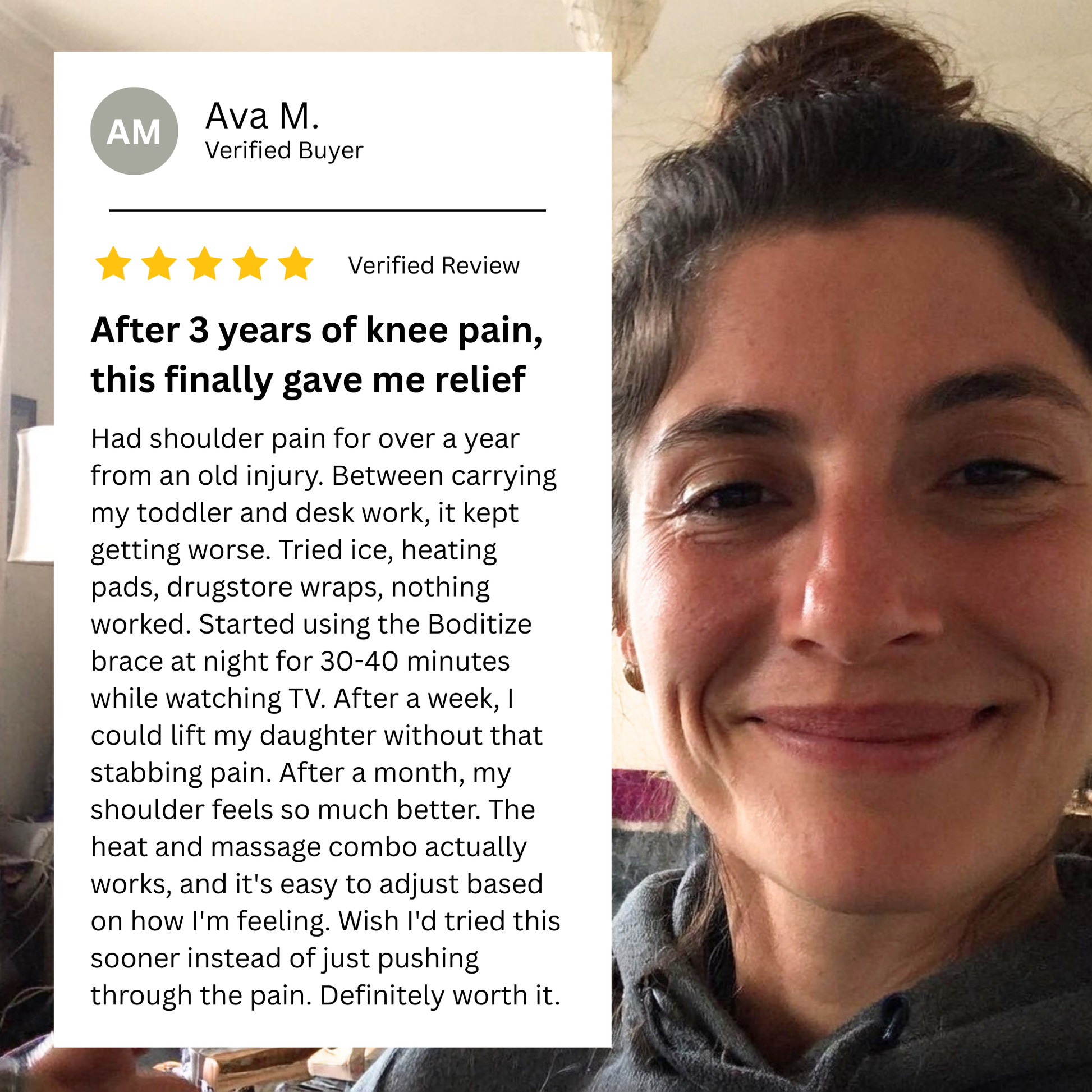 Boditize™ has genuinely changed everything. The adjustable heat and massage work together beautifully to loosen up my shoulder before and after activity. It's also incredibly easy to use, just wrap it on and adjust the settings. Worth every single penny.